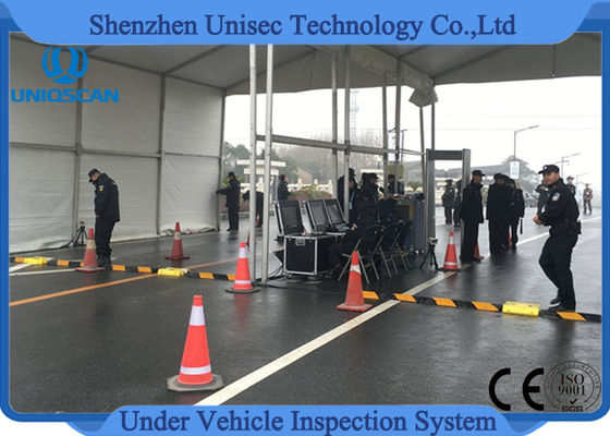 The portable under vehicle surveillance system UV300M is the embedded solution for the fully automatic identification of threats or modifications to a vehicles undercarriage. Vehicles drive over the environmentally sealed, dual view scanners while our rugged portable under vehicle surveillance system systems scan and compile two high-resolution images of a vehicles undercarriage to create the vehicles fingerprint.Two views make it easier to see any threatening objects that may be hidden on top of an axel or crossbeam. An overview/driver camera captures the normal view of car/driver and displays this on the high-resolution touch screen.